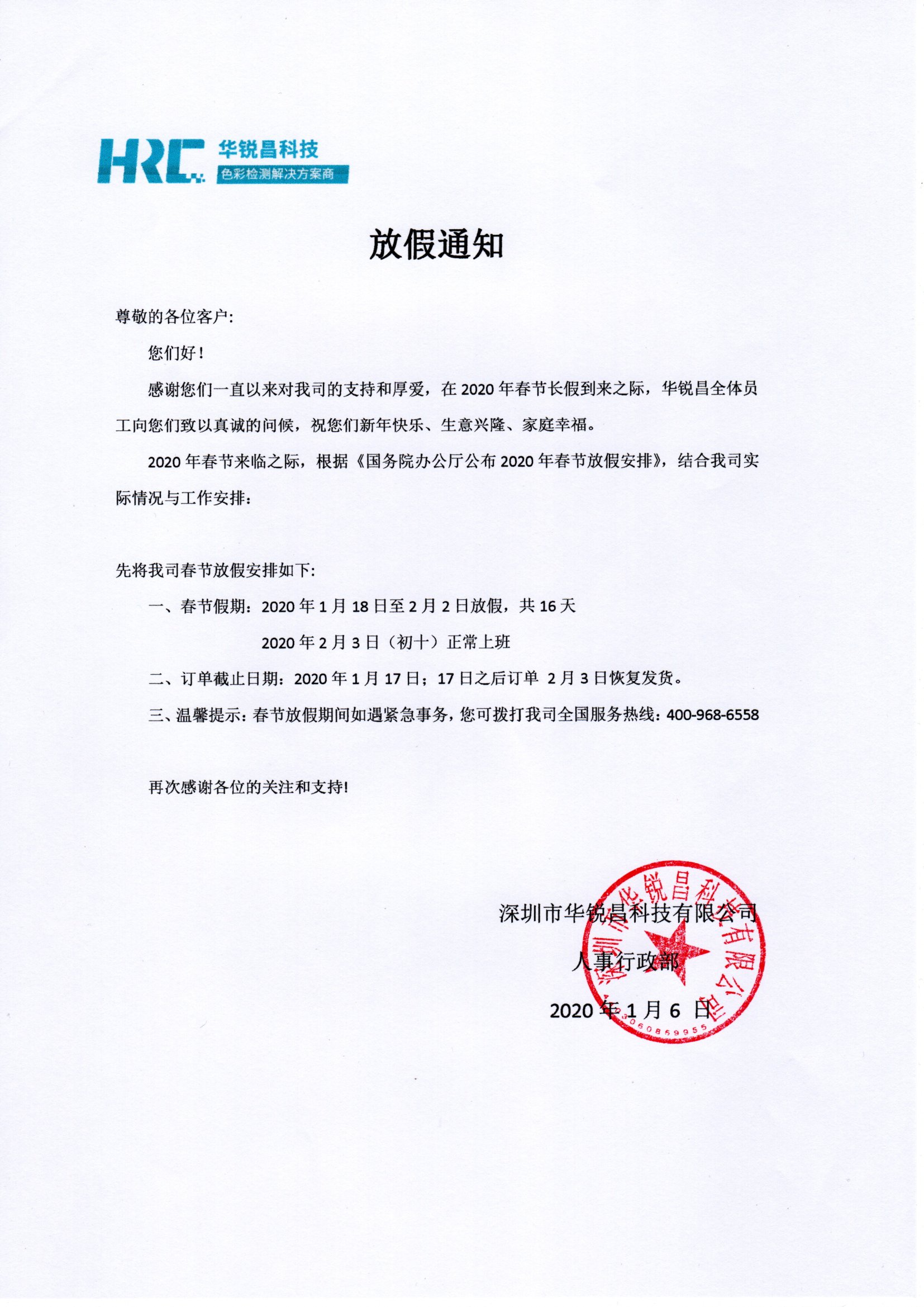 2020年春節(jié)來臨之際,根據(jù)《國務院辦公廳公布2020年春節(jié)放假安排》,結合我司實際情況與工作安排: