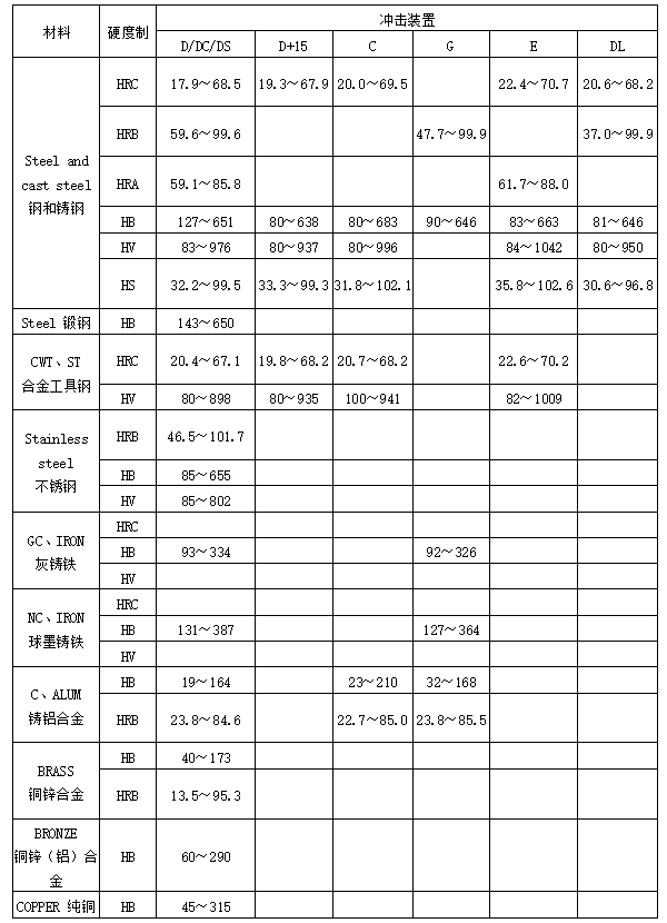 硬度制式:HL HB HRC HRB HV HS