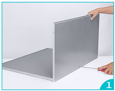 第一步:拿出底板擺放平,用背板對(duì)準(zhǔn)兩個(gè)孔位,拿出螺絲對(duì)準(zhǔn)孔位擰緊 第二步:拿出左側(cè)板對(duì)準(zhǔn)孔位擰上螺絲(共4顆)