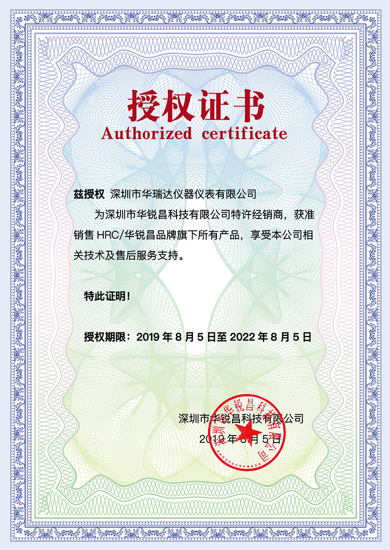 深圳市華銳昌科技有限公司建立了戰(zhàn)略合作伙伴關(guān)系,深圳市華瑞達(dá)儀器儀表有限公司成為深圳市華銳昌科技有限公司的特許經(jīng)銷商,獲準(zhǔn)銷售HRC/華銳昌品牌旗下所有產(chǎn)品,享受本公司相關(guān)技術(shù)及售后服務(wù)支持。