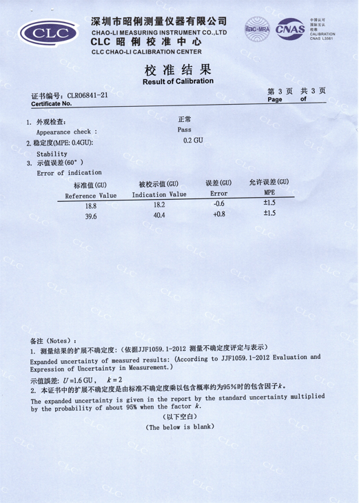 , 均符合GB/T9754,GB/T1389等多項國家標準,性能指標均能達到國家JJG696一二級工作光澤度儀的要求。